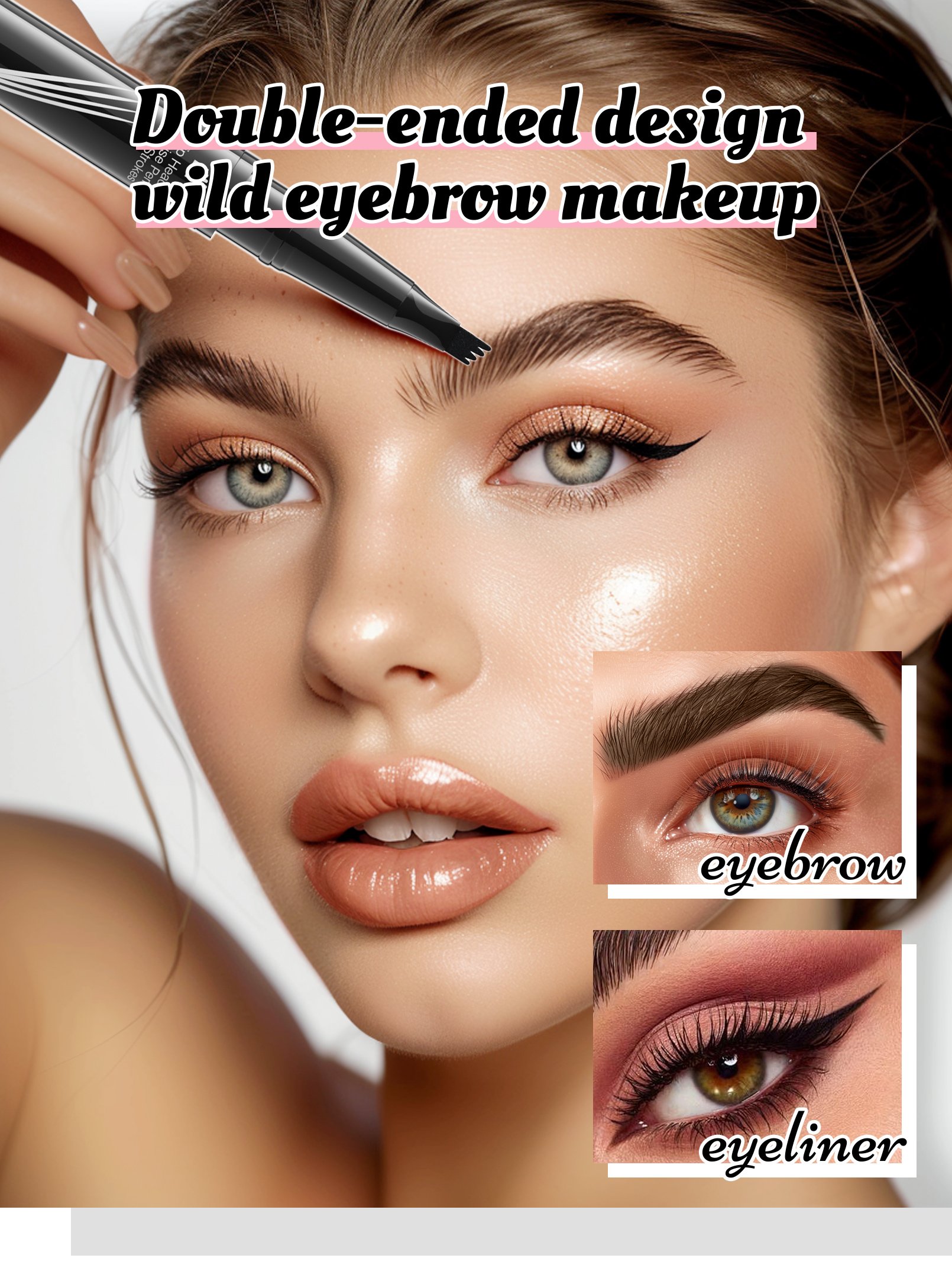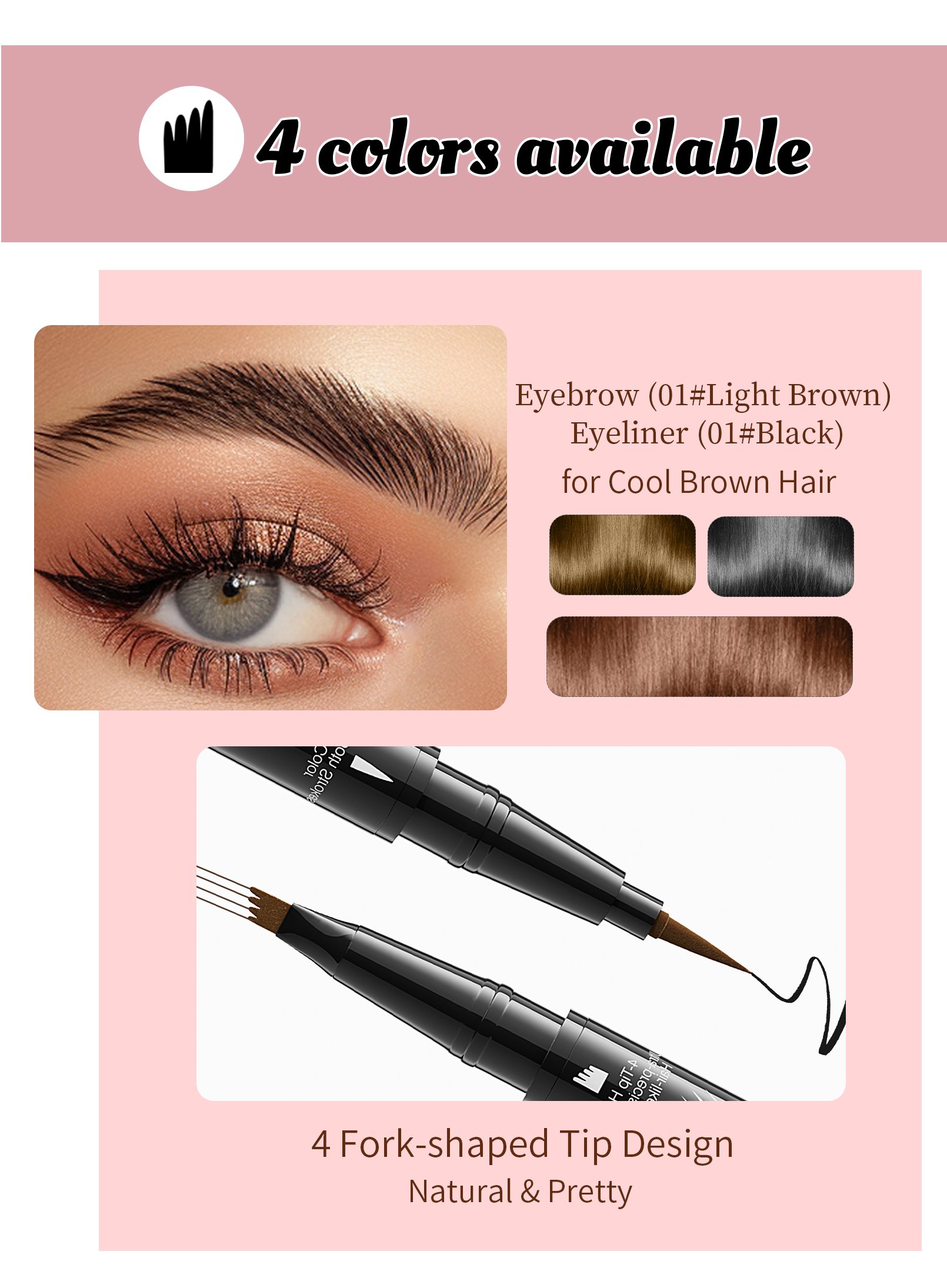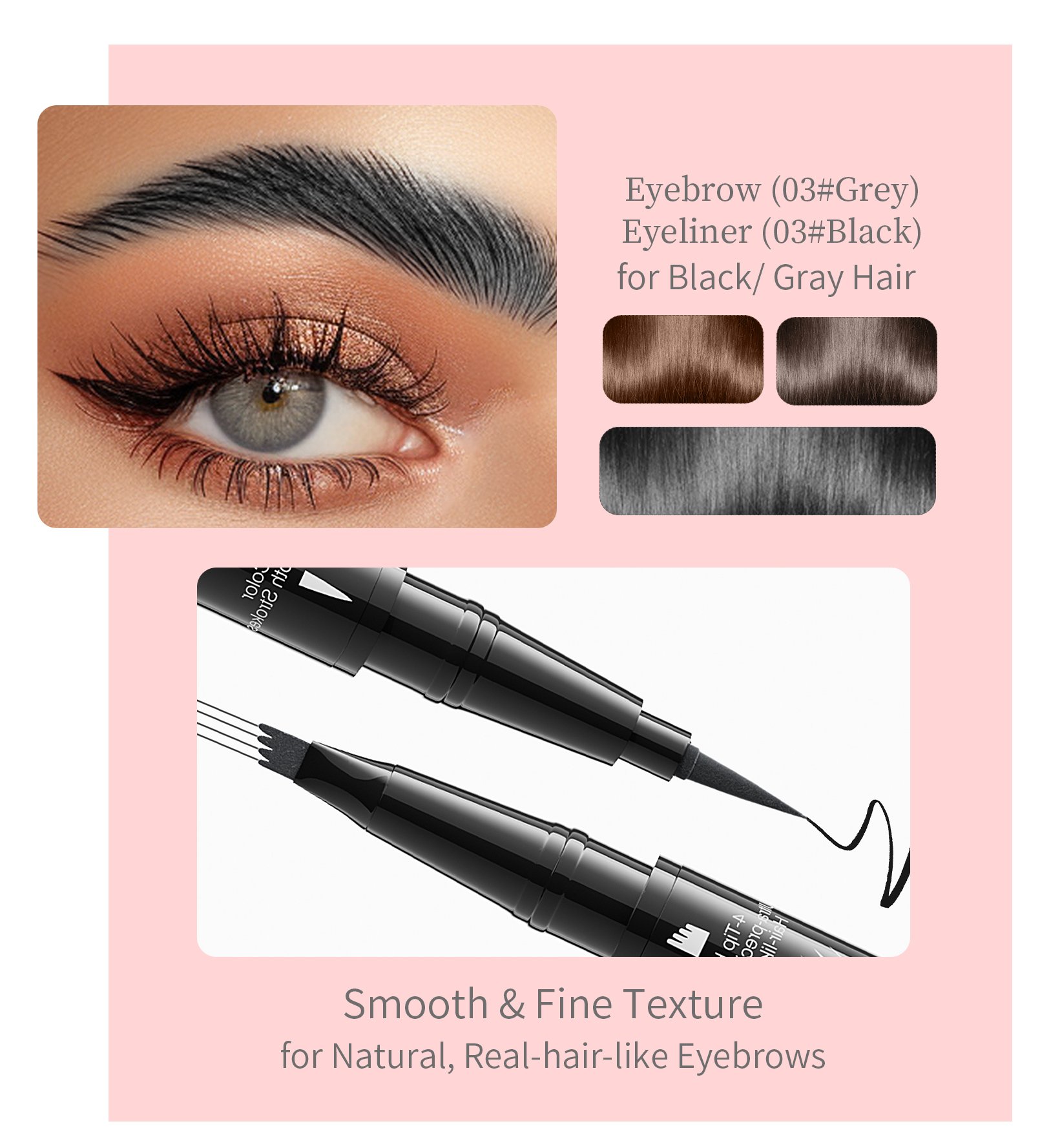 Want to spend less time on your eyebrows during busy mornings? Our dual-sided waterproof eyebrow pencil is perfect for beginners and pros alike! Designed to transform your brows with natural fullness, the eyebrow microblading pen allows you to easily fill, shape, and define brows. SUPER QUICK and EASY to achieve ultra-precise, defined, and natural-looking full brows in seconds, resembling 3D natural hair!