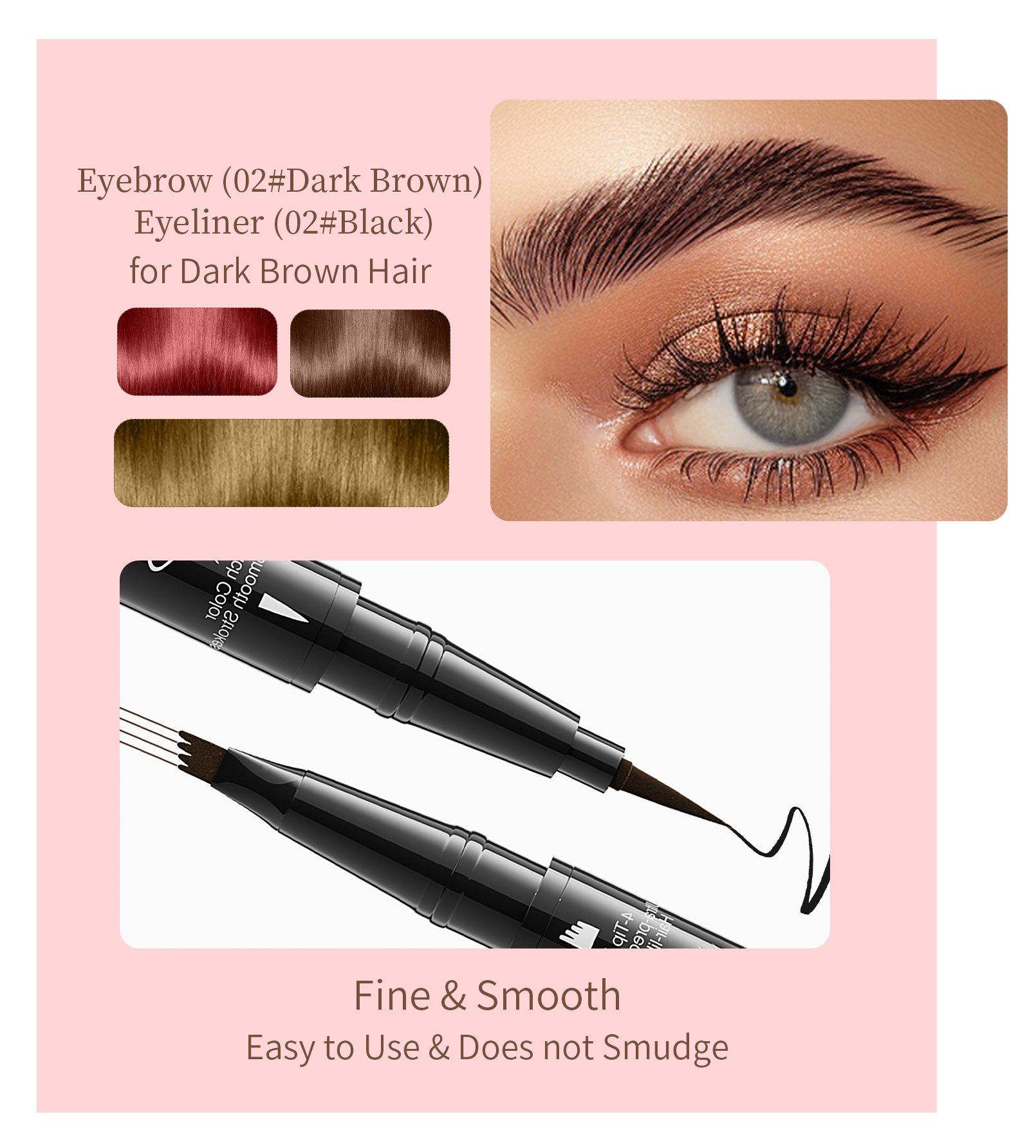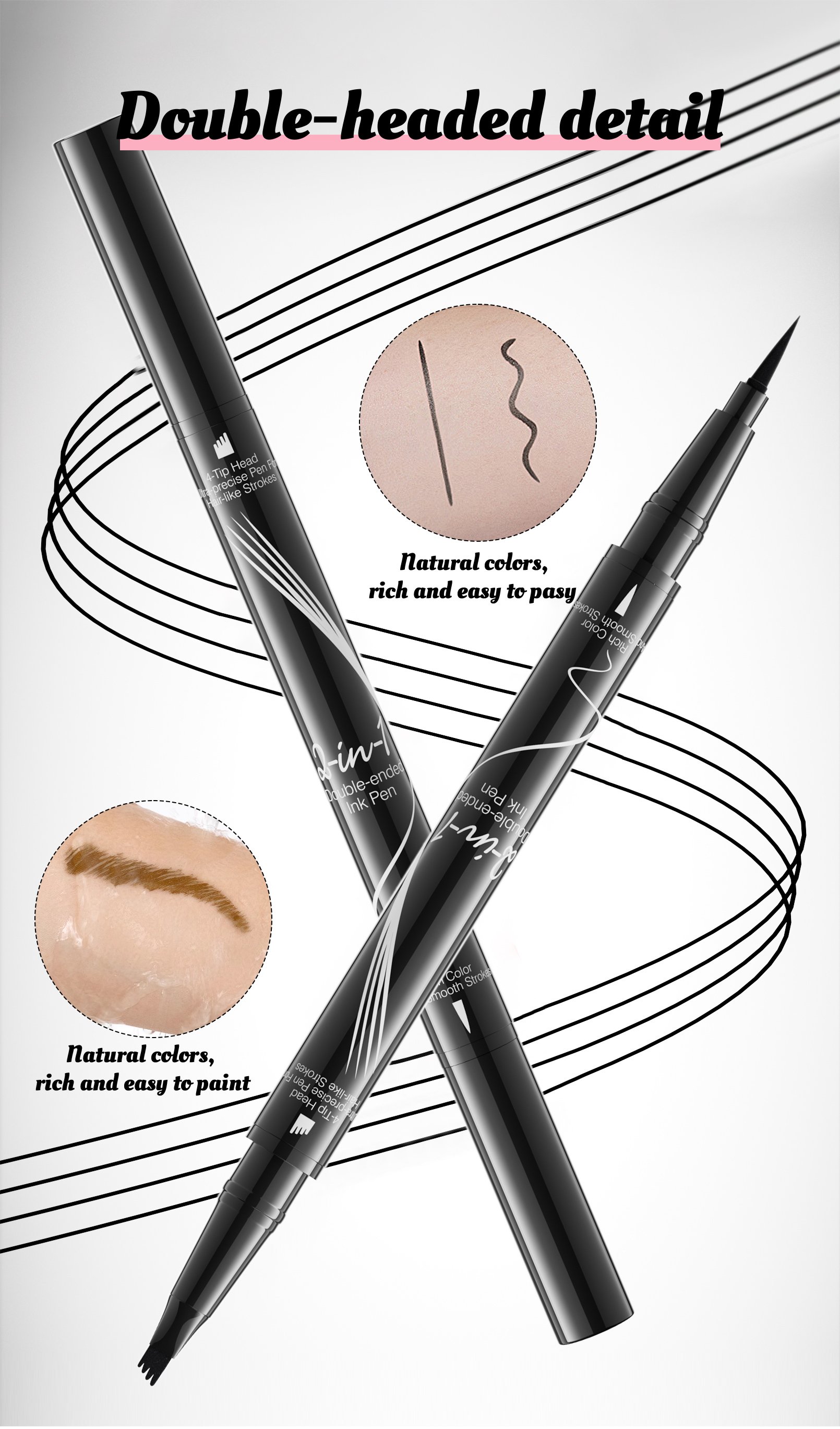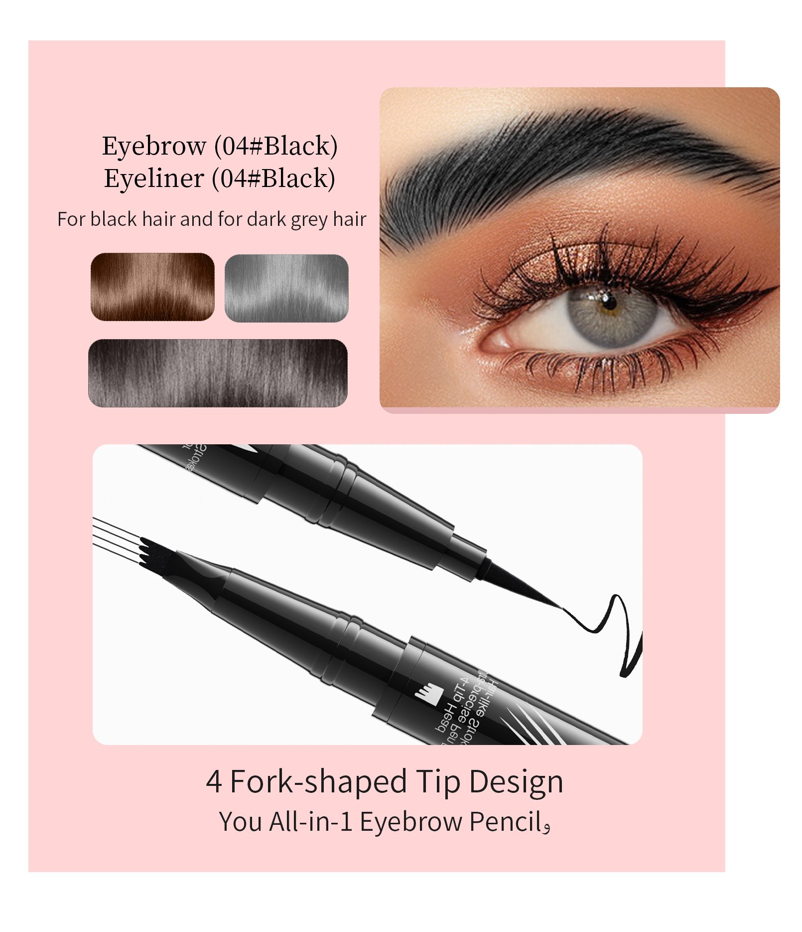 Want to spend less time on your eyebrows during busy mornings? Our dual-sided waterproof eyebrow pencil is perfect for beginners and pros alike! Designed to transform your brows with natural fullness, the eyebrow microblading pen allows you to easily fill, shape, and define brows. SUPER QUICK and EASY to achieve ultra-precise, defined, and natural-looking full brows in seconds, resembling 3D natural hair!